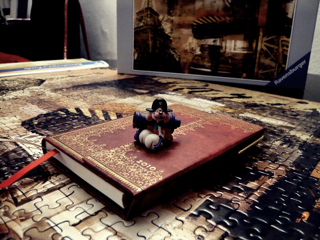 Die zwei Fotos mit dem Buch und dem Puzzle find ich richtig schön. Meine Frau puzzelt momentan auch mal wieder 😀 manchmal mache ich mit.