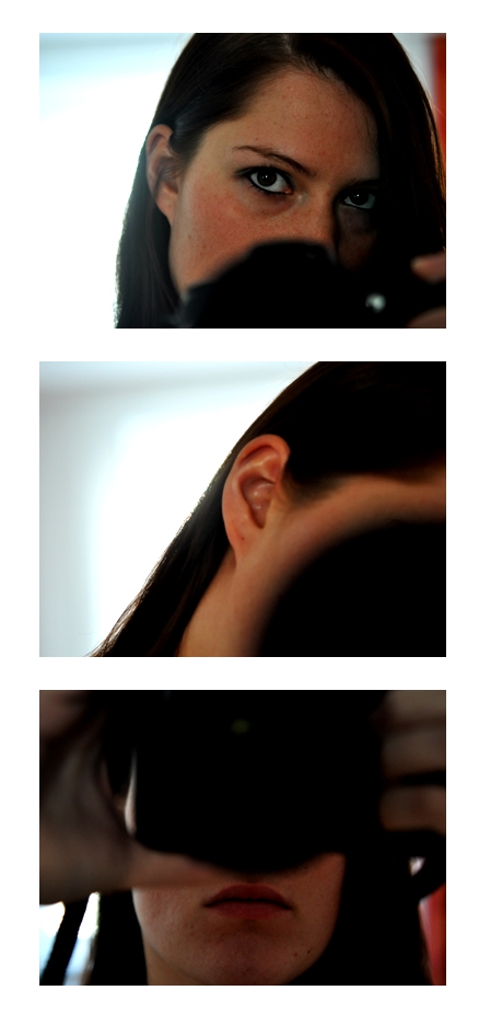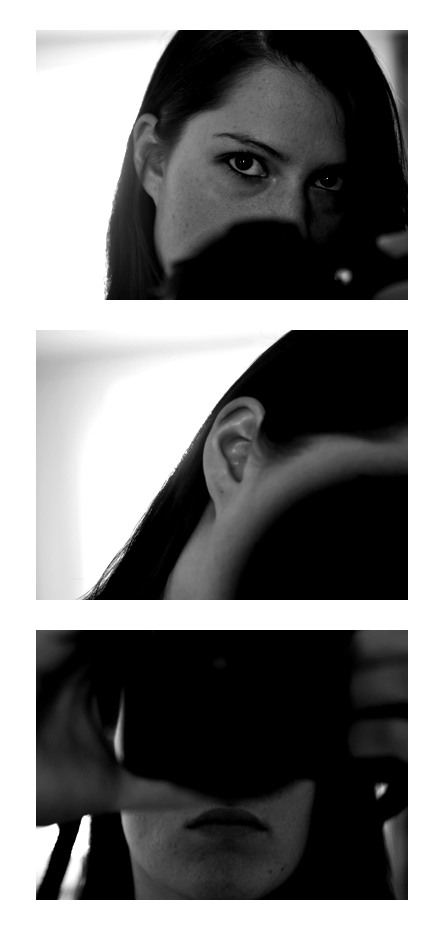 Ich habe mich für die klassische Selbstporträt-Variante entschieden, die gleichzeitig symbolisch etwas über mich aussagen soll: Auf dem ersten Bild liegt der Fokus auf den Augen, auf dem zweiten am Ohr und am dritten auf dem Mund. Ich habe mich versucht zu überlegen, wer ich bin, was mich ausmacht, wie ich mein Leben sehe und das, was ich so tue. Und die Dinge lassen sich eigentlich auf diese drei Dimensionen zusammenfassen: ich sehe (beobachte), ich höre (zu) und ich spreche (kommunizieren). Das ist die Grundlage all dessen, was mich ausmacht, interessiert und denke ich, auch beschreibt.
