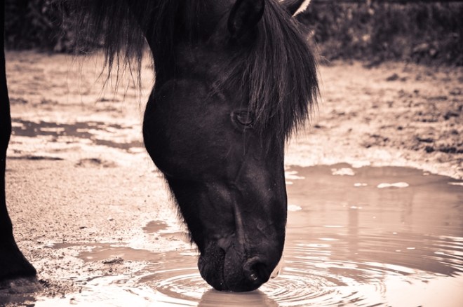 Mein Favorit ist aber eher das Dunkle, zum einen vielleicht auch wegen der monochromen Bearbeitung, die mir gut gefällt, zum anderen weil es mit seiner haarigen Schnute so süss in der Pfütze herumschlappert 🙂