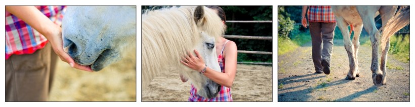 wie auf dem zweiten Bild das Mädchen seinen Kopf in die Mähne des Pferdes gräbt, pure Freundschatft, tiefes Vertrauen.