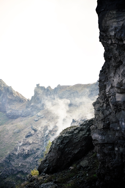 Die letzten zwei Fotos zeigen Felsen des Vesuv-Kraters und die Schwefelwolken, die dort aufsteigen…